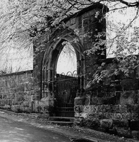 Jenseits des Chorturmes befindet sich Mauerwerk der ursprünglichen Kirchfreiheit mit einem erhaltenen Portal. In die Wange eines Treppenaufganges wurde ein Epitaph des Ursprungsbaues vermauert, um die Kirche herum befinden sich mehrere schützenswerte Grabsteine.
