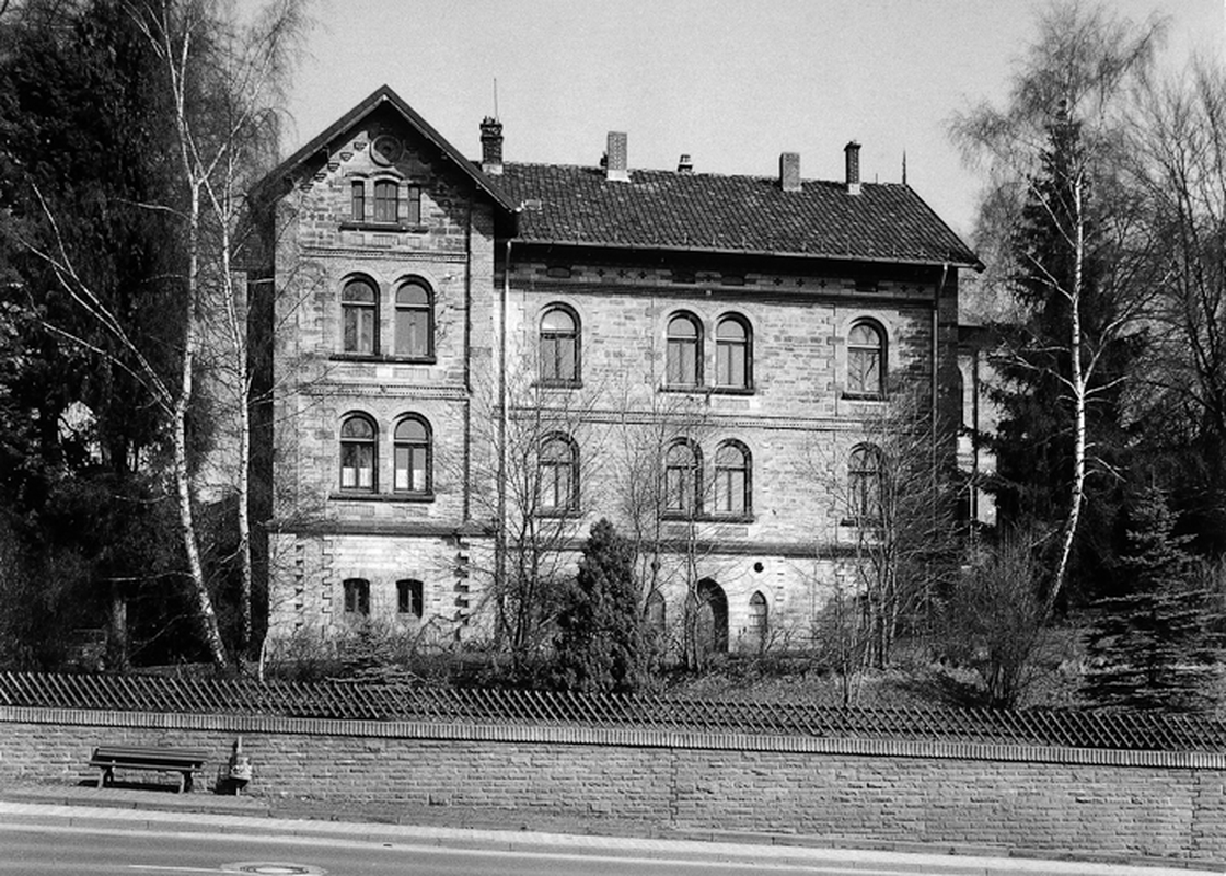 Das wenig aus der Straßenflucht zurückversetzte Gebäude über einer Ecksituation umschließt ein kleiner Park. Die bezeichnete Villa wurde über einem lang gestreckten, durch Vor- und Rücksprünge gekennzeichneten Grundriss entwickelt. Im Aufrisssystem tritt im linken Gebäudeteil ein gelbfarbiger Eckrisalit hervor. Die rundbogig geschlossenen Fenster werden zu Gruppen zusammengefasst. Abgeschlossen wird das Haus von Großalmeröder Ziegeln.