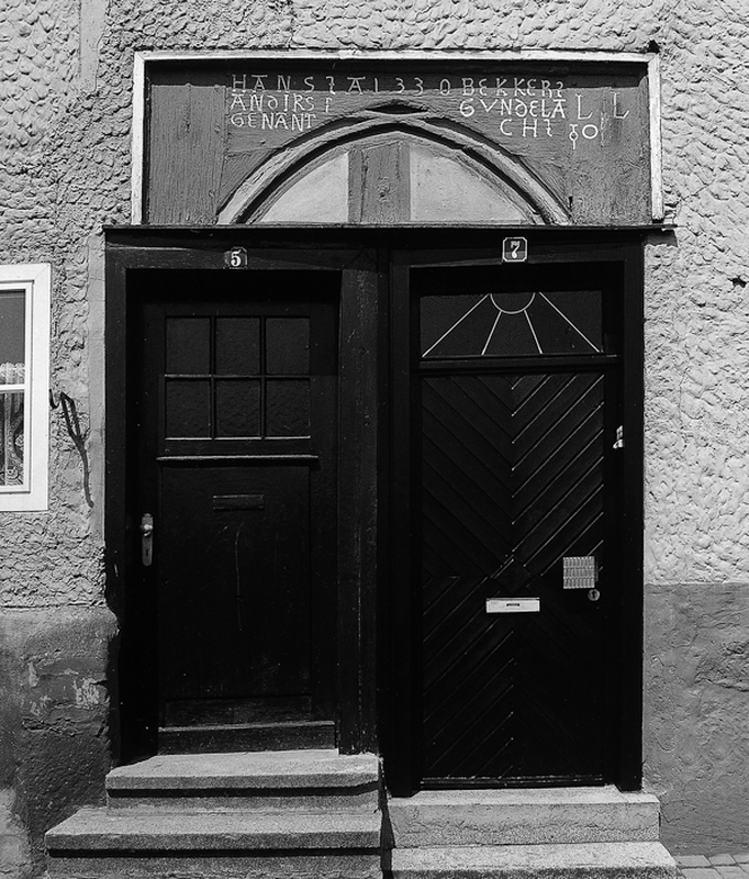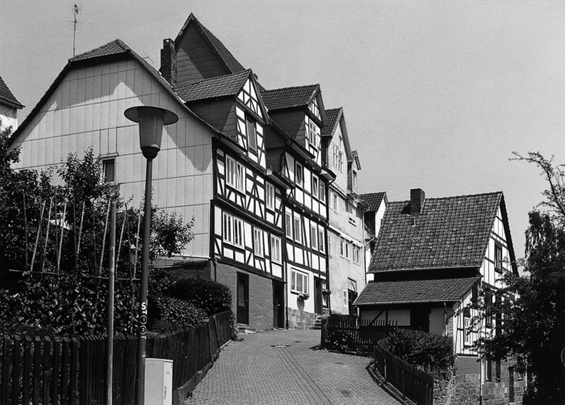 Ebenso wie das benachbarte Gebäude erhebt sich über ansteigendem Terrain auf einer ausgeprägten Sockelzone eine spätmittelalterliche Ständer-Rähm-Mischkonstruktion, vermutlich mit einer Halle und Wirtschaftsräumen in den Untergeschossen; darüber Wohnbereich. Vollständig verputzt. Erhalten hat sich der obere Teil eines spitzbogigen Portals mit folgender Inschrift: HANS AD 1330 BEKKER ANdIRS GENANT GVNDELACH. Gundelach war in der Mitte des 16. Jhs. Bundesmeister des 1537 durch Landgraf Philipp initiierten Gläsnerbundes, dessen Sitz Großalmerode war.