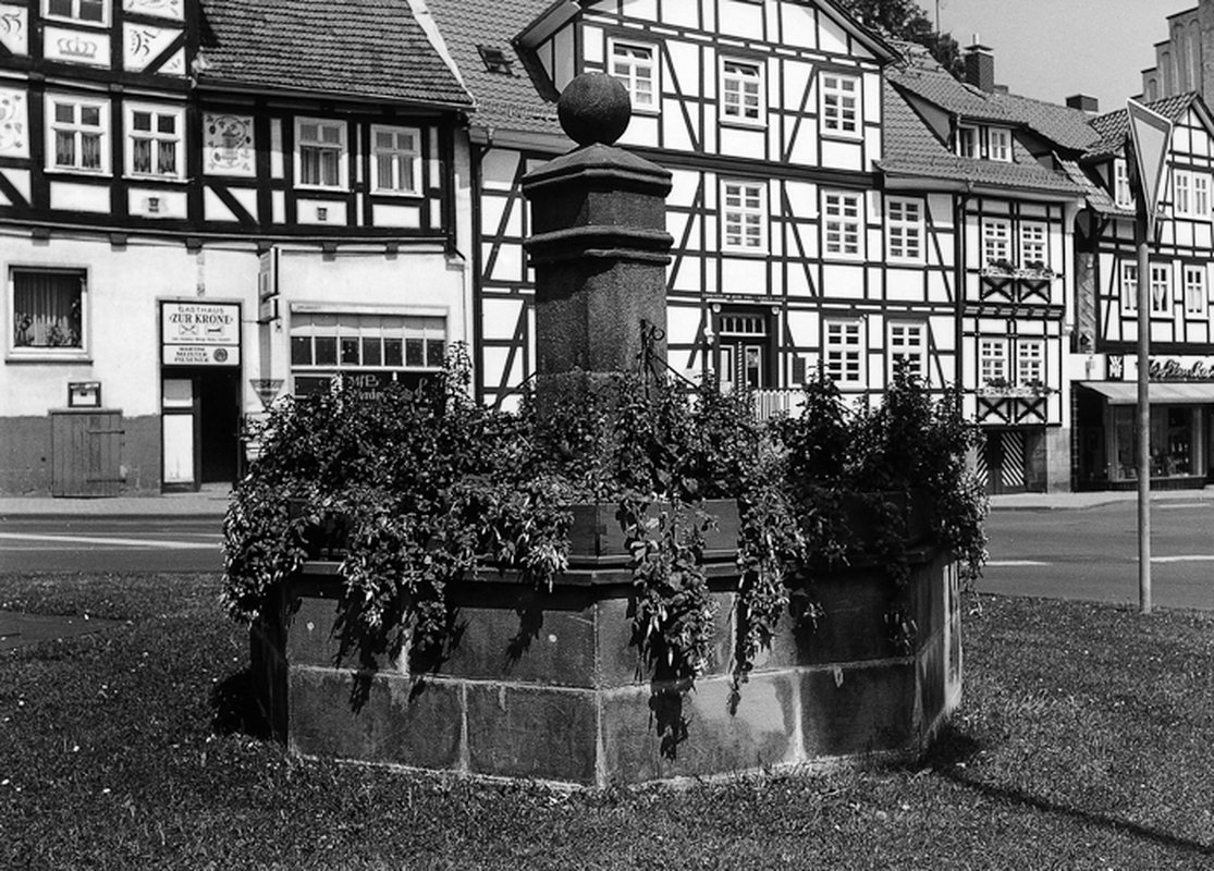 Großer Kirchrain befindet sich ein Brunnen mit sechsseitigem Kump und einem mehrfach profilierten Brunnenstock, der von einem Wulst sowie einem Zeltdach mit bekrönender Kugel abgeschlossen wird. Kulturdenkmal aus ortsgeschichtlichen und städtebaulichen Gründen.