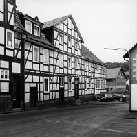 Am Beginn des Straßenzuges befindet sich eine breit gelagerte Gruppe von Wohngebäuden; das linksseitige Haus mit Mansarddach und den 3/4-Streben mit Brust- und Sturzriegeln in beiden Geschossen und im Zwerchhaus aus dem frühen 19. Jh. Der rechts gelagerte Hauptteil der Gebäudegruppe mit zweifach verriegelten Stockwerkstreben in den Eckgefachen stammt aus dem Jahr 1873. Die Haustür stammt aus der Bauzeit. Das Wohnhaus für Arbeiter der benachbarten Fabrik ist aus sozialgeschichtlichen und städtebaulichen Aspekten schützenswert.