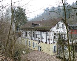 1879 aus einer bereits 1815 bezeugten Loh-, Schwärze- und Mehlmühle entstandenes Mühlengebäude, erbaut durch Ludwig Schäfer, der neben der Nutzung als Kreidemühle hier im Erdgeschoss eine Bürstenfabrikation betrieb. Im Obergeschoss befanden sich Wohnräume. Nach der Errichtung einer neuen Fabrik nordwestlich der Mühle wurde das Gebäude ab ca. 1900 bis Anfang der 1930er Jahre als Pension im Zuge des aufblühenden Eppsteiner Fremdenverkehrs genutzt.