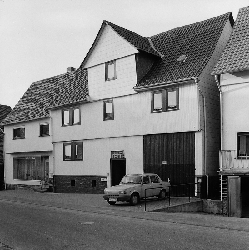 Am innerörtlichen Kreuzungsbereich von insgesamt vier Straßen setzt das große Wohn-Wirtschaftsgebäude einen wichtigen städtebaulichen Akzent. Zweigeschossig erschlossen mit hoher Toreinfahrt und erkennbarem Geschossüberstand. Eine Datierung nur unscharf möglich, da das Gebäude mit Kunststoffplatten verkleidet ist. Vermutlich um 1800. Trotz der massiven Störung ist das Haus Kulturdenkmal aus städtebaulichen Gründen.