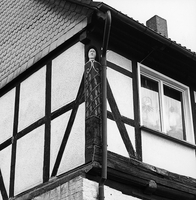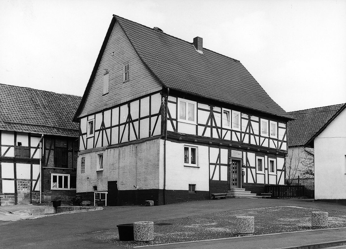 Im hinteren Bereich der Parzelle erhebt sich ein stattliches Fachwerkwohnhaus mit einem regelmäßig gestalteten Gerüstraster, das sich aus Mannfiguren mit Hals- und Brustriegeln an den Eck- und Bundständern im Obergeschoss rekrutiert; dazwischen im Brüstungsbereich gegenläufige Fußstreben. Die Kopfknaggen der Mannfiguren werden durch Flachschnitzdekor hervorgehoben. Bauzeit frühes 18. Jh., die Fachwerkkonfiguration im Untergeschoss etwa einhundert Jahre jünger. Am linken Eckständer des Obergeschosses befindet sich eingelegtes Weinlaub und ein menschlicher Kopf.