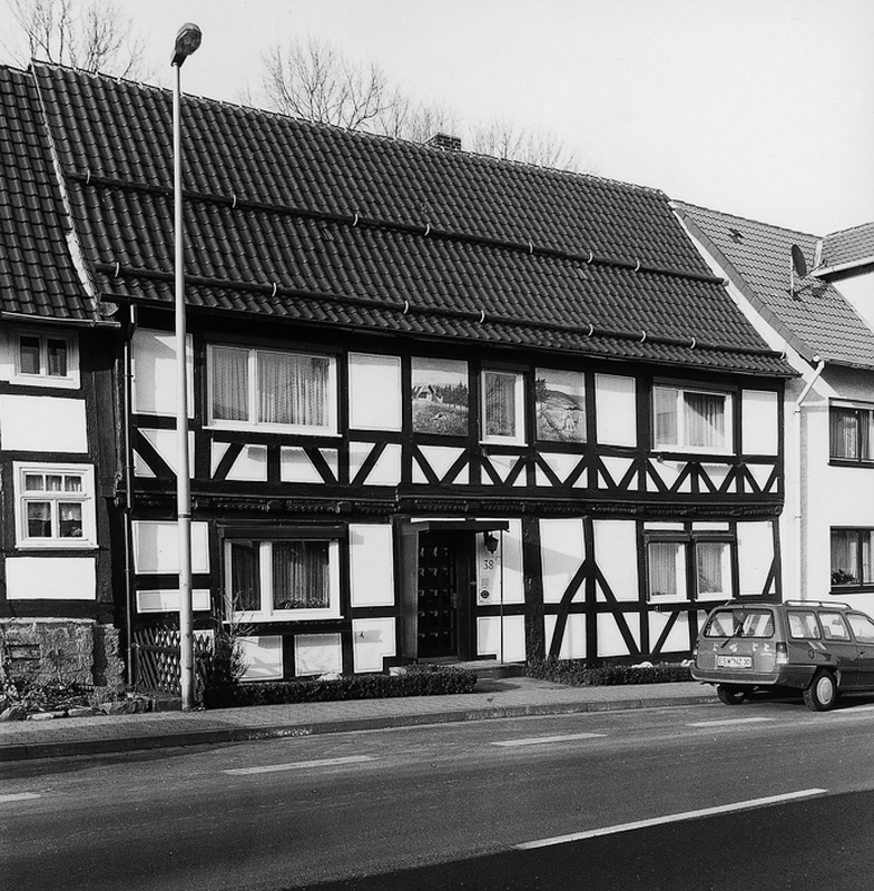 Lang gestrecktes, traufständig erschlossenes Fachwerkwohnhaus aus den letzten Jahren des 17. Jhs. mit einem niedersächsisch beeinflussten Fachwerkraster, das ohne Gerüstfiguren auskommt. Das statische Gefüge der Fachwerkkonstruktion wird von einer Reihung konvergierender Fußstreben im Brüstungsbereich des Obergeschosses verfestigt. Im Untergeschoss wurden zum Teil stark gebogene 3/4-Streben verwendet. Im Bereich des Geschossüberstandes dicker Taustab.