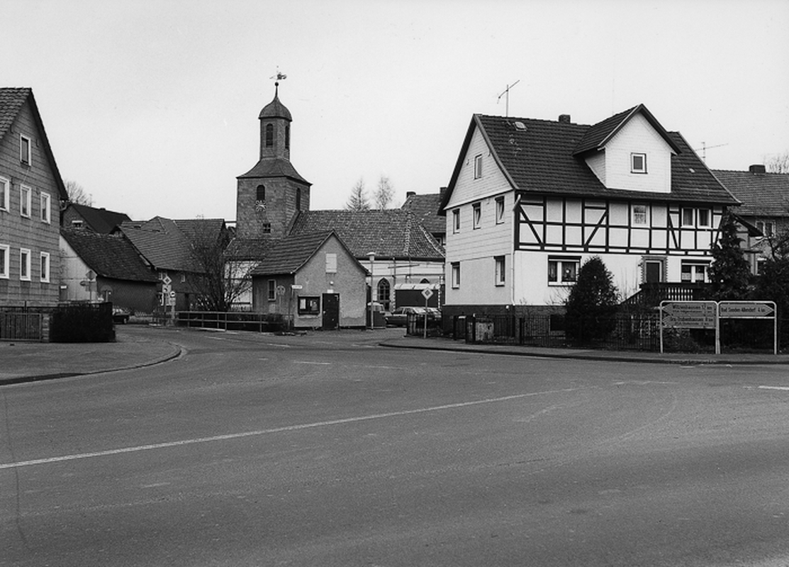 Der Ortskern befindet sich mit der Kirche und benachbarten Höfen aus dem Ende des 16. Jhs. nordwestlich der Kammerbach durchschneidenden Kreuzung von Kasseler- und Kohlenstraße. Östlich davon abgesetzt reihen sich am aufsteigenden Wahlenberg traufständig erschlossene Streckhöfe aneinander, die als zusammenhängende Ortserweiterung aus der Mitte des 19. Jhs. ein eindrucksvolles Ensemble bilden. Die Verbindung zwischen Wahlenberg und historischem Ortskern stellt der kopfsteinbepflasterte Weg „An der Hufe" her, in dessen Verlauf sich Kleinbauernstellen aus der zweiten Hälfte des 18. Jhs. erheben. Die Bebauung der Kohlenstraße setzt sich im südlichen Bereich der Ortslage aus zumeist giebelständigen Streckhöfen zusammen, die aus dem späten 18. Jh. stammen. Im westlichen Bereich der Kohlenstraße schließt der Dorfplatz die Gesamtanlage ab.