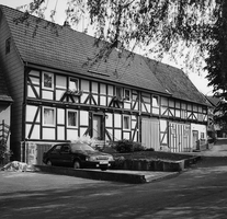 Unterhalb des aufsteigenden Rains erhebt sich ein Streckhof, dessen Wohngebäude aus der ersten Hälfte des 18. Jhs. datiert, kenntlich an den starken Hölzern, die an den Eckständern zu Mannfiguren mit Hals- und Brustriegeln abgezimmert wurden. Dazwischen im Obergeschoss konvergierende Fußstreben an den Bundständern. Den Status des Bauherren verdeutlichen die reichlich verwendeten Schmuckformen: dicke Taubänder an den Eckständern, Seilband an der Schwelle, Eierstab an den Füllhölzern. Rechts angeschlossen ist ein jüngerer Wirtschaftsbereich mit hohen Toreinfahrten.