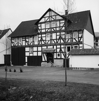 Über einer Ecksituation erhebt sich ein mächtiger, ortsbildprägender Streckhof aus dem Jahr 1815 mit einem markanten, regelmäßig gebildeten Fachwerkgefüge, das sich aus 3/4-Streben mit Brust- und Sturzriegeln an den Eck- und Bundständern zusammenfügt; dazwischen im Brüstungsbereich gegenläufige Fußstreben. Ähnliches Gefüge im Zwerchhaus. Linksseitig ist der Wirtschaftstrakt angelegt.