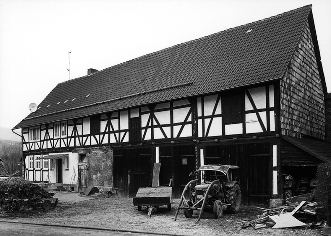 Das Einhaus über lang gezogenem Grundriss trägt am Abschluss der Lindenstraße wesentlich zur Ortsgestalt bei. Das Fachwerkgefüge des Wohnbereiches rekrutiert sich aus Mannfiguren mit Hals- und Brustriegeln in beiden Geschossen an Eck- und Bundständern, dazwischen in ortsüblicher Manier gegenläufige Fußstreben im Brüstungsbereich. Die Eckständer werden durch einen dicken Taustab hervorgehoben. Rechts befindet sich der jüngere Wirtschaftstrakt.