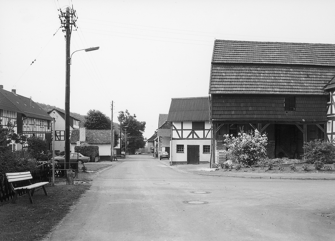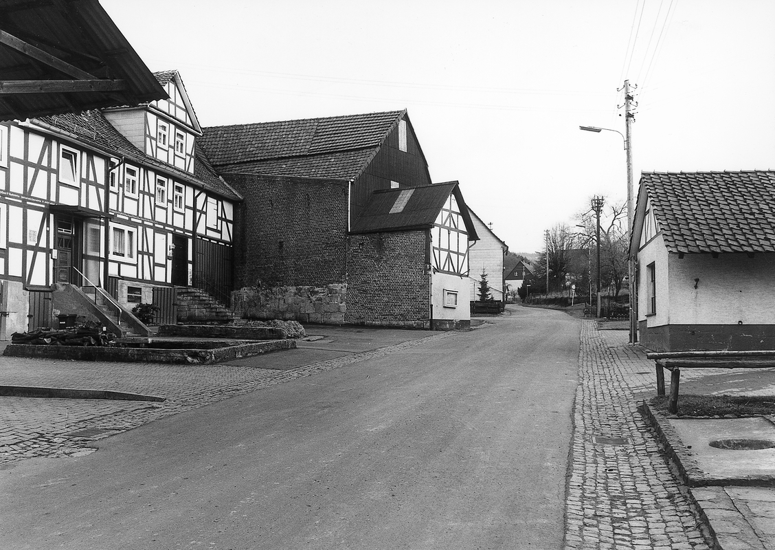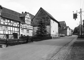 Die Gesamtanlage des Ortes Weißenbach umgrenzt eine Bausubstanz, die im Großteil aus der ersten Hälfte des 19. Jhs. stammt. Es handelt sich dabei um die Gebäude Weißenbachstraße 17 - 27 und 12 - 22, die sich als traufständig erschlossene Einhäuser zu einer eindrucksvollen Staffel aneinander reihen. Unter einem Einbaus ist ein Wohn-Wirtschaftsgebäude zu verstehen, dessen Bestandteile, Wohn- und Wirtschaftstrakt, aus einer Bauzeit stammen und unter einem durchlaufenden First vereinigt sind. Die Einhäuser in Weißenbach verzichten auf repräsentative Fachwerkfiguren und Schmuckformen. Die Fachwerkkonstruktionen sind vielmehr von 3/4- oder Stockwerkstreben versteift. Ein Geschossüberstand ist als Träger von Dekor kaum ausgebildet. Typisch für das historische Ortsbild sind die mit Großalmeröder Ziegeln eingedeckten Dächer.