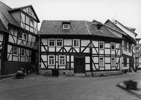 Dem kurvigen Verlauf der Straße folgendes Gebäude in zwei Geschossen über hohem Sandsteinsockel mit betont niedrigen Geschosshöhen und einem Fachwerkgefüge mit symmetrischem Zuschnitt aus 3/4-Streben und konvergierenden Fußstreben. Interessant ist die niedrige Sockelzone mit Kellereingang, die sich aus groben Steinquadern zusammenfügt. Das Haus, dessen baulicher Kern aus der Mitte des 17. Jhs. datiert, ist aus städtebaulichen und stadtgeschichtlichen Aspekten schützenswert.