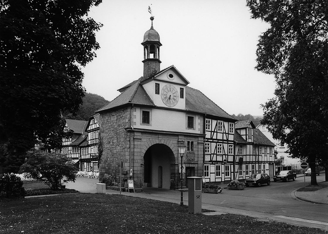 Das Södertor wurde 1704/05 als Ersatz für ein hölzernes Torhaus erbaut. Der massive Bau mit seiner hohen, rundbogig geschlossenen Durchfahrt wird von einem schlanken Glockenturm über einem Walmdach mit eingestelltem Uhrgiebel bekrönt. Über dem Fußgängerdurchlass befindet sich ein landgräflich-hessisches Wappen. Die der Stadt zugewandte Traufseite ist verputzt, die Giebelseite ist steinsichtig. Die Zufahrtseite verfügt mit den aufgelegten, großformatigen Platten und dem von Lisenen flankierten Durchlass über ein herrschaftliches Baumotiv. Als ehemaliges Stadttor ist die Anlage aus geschichtlichen und städtebaulichen Gründen Kulturdenkmal.