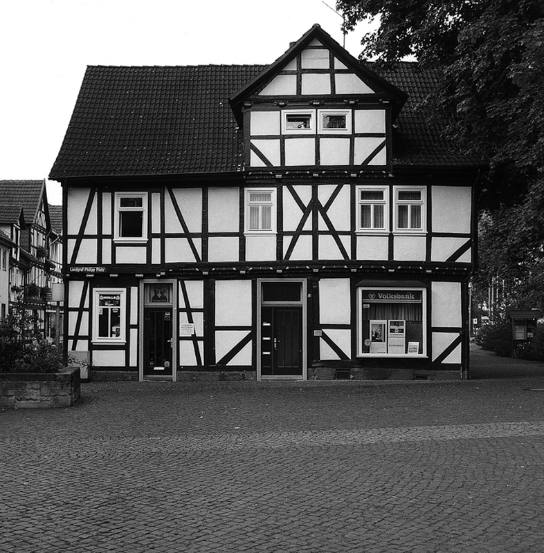 Zweigeschossiges, freistehendes Fachwerkgebäude, das den Beginn der Langen Reihe und Kurhausstraße markiert. Der Gebäudekern stammt aus der zweiten Hälfte des 17. Jhs. Die asymmetrische Fachwerkkonfiguration wird durch die K-Streben am traufseitigen Bundständer hervorgehoben. Besonders auffällig sind die abgearbeiteten Wülste im Bereich des Geschossüberstandes. Als wichtiges Element der Platzgestaltung Kulturdenkmal.