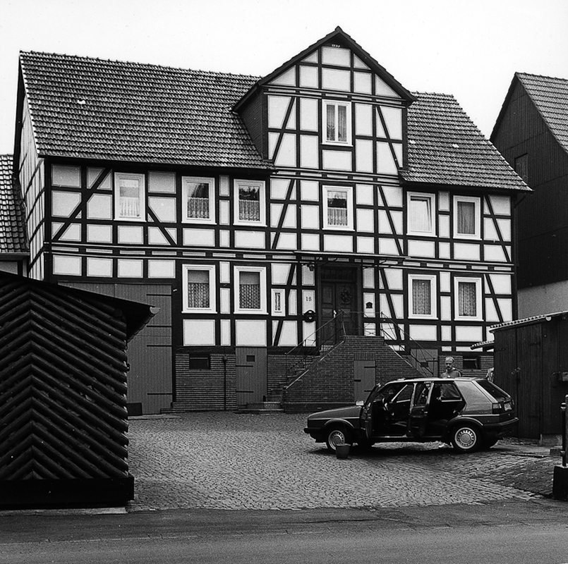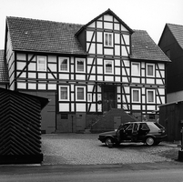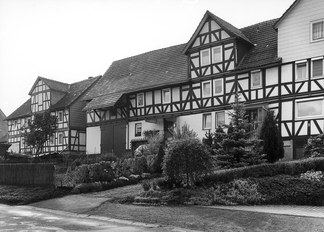 Am Abschluss der westlichen Ortsrandbebauung erhebt sich ein traufständig orientiertes Wohnhaus mit aufgesetztem Zwerchhaus über einem hohen Sockel, dessen Fachwerkkonfiguration mit den doppelt verriegelten Stockwerkstreben eine Datierung in das Ende des 19. Jh. zulässt. Das Haus ist als guterhaltener, markanter Blickpunkt in historischer Ortsrandlage aus städtebaulichen und ortsgeschichtlichen Gründen Kulturdenkmal.