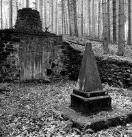 Vor der Gruft erhebt sich ein Gedenkstein in Form einer Pyramide. Sie gedenkt: ALLHIER/RUHET/MORDIAN/GUSTAV/ADOLPH/WILHELM/VON/BISCHOFFSHAUSEN/HESSISCHER/GENARALLIEUT:/DER CAVALLERIE/RITTER/DES/HESSISCHEN/ORDENS/VOM/GOLDENEN/LÖWEN/UND/POUR LA VERTU/ MILITAIRE/GEBOOHREN/DEN 12.TEN/NOVEMB:/1725/VERSTORBEN/DEN 22 TEN/IANUAR/1798.