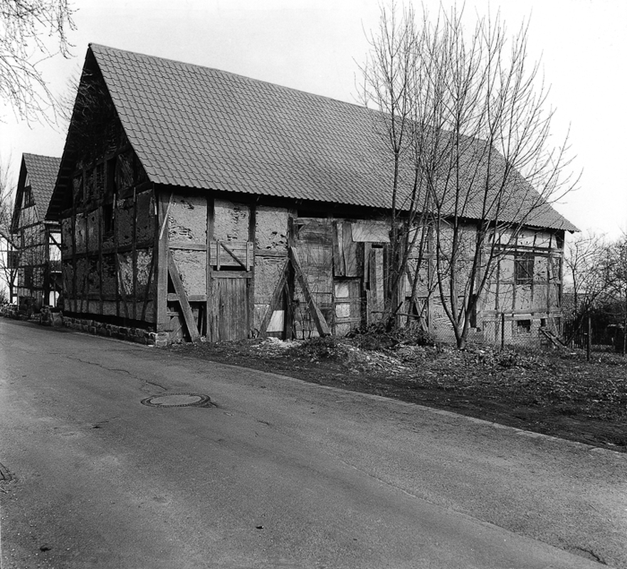 Markante Hofanlage am Ende des Straßenzuges mit giebelständig erschlossenem Wohnhaus und einer Fachwerkkonfiguration aus dem ersten Drittel des 18. Jhs., bestehend aus 3/4-Streben an den zu versteifenden Ständern. Gegenüber dem Wohnhaus befindet sich eine Scheune aus der gleichen Bauzeit. Beide Bauten setzen auf Grund ihrer Erscheinungsform einen wichtigen städtebaulichen Akzent und sind wegen des guten Erhaltungszustandes schützenswert.