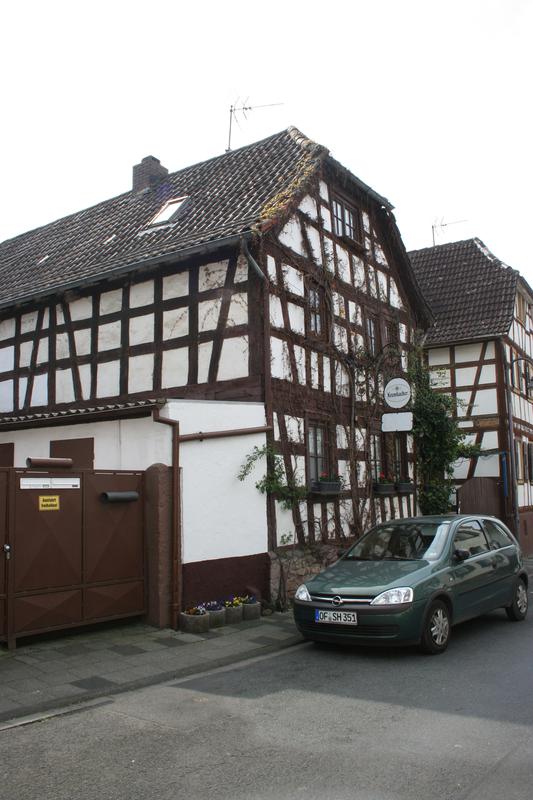 Großformatiges Wohnhaus des konstruktiven Typs kurz vor 1800 mit charakteristischem kleinteiligem Fachwerk, bis auf die Eckstreben in rechtwinkligem Raster; geringer Geschossüberstand, giebelseitig Füllhölzer. Im Türsturz Inschrift "DIESES HAUS HAT ERBAUT JOHANN VALENTIN KÜSTER IM JAHR 17.."; Scheune mit Inschrift und Datum 1788. Als Bestandteil der historischen Bebauung innerhalb der Stadtbefestigung aus ortsgeschichtlichen und städtebaulichen Gründen als Kulturdenkmal geschützt.