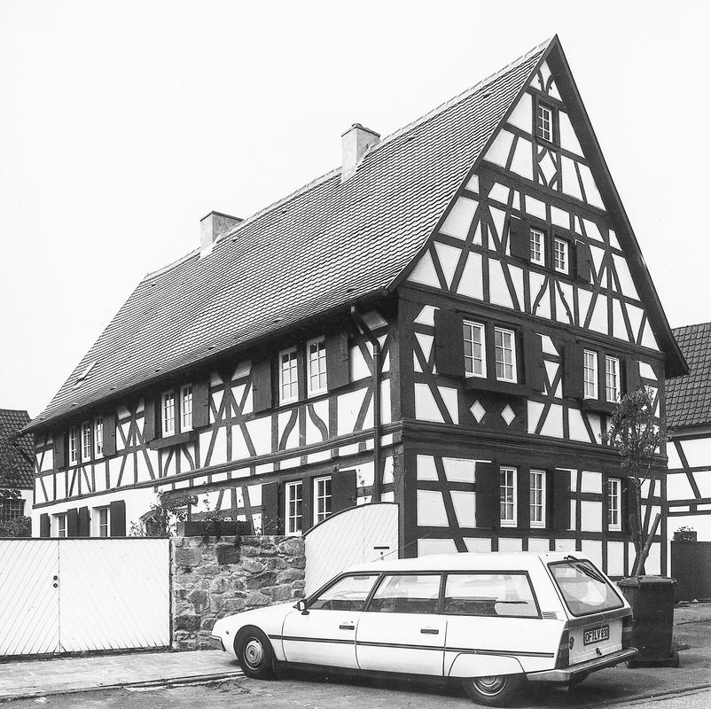 Giebelständiges Wohnhaus, im Sturzbalken des Eingangs inschriftlich 1705 (?) datiert. Stellenweise erneuertes Fachwerk mit Zierformen: geschwungene Brüstungsstreben, im Giebel mit Nasen, Negativrauten und Mannfiguren an der Traufwand zum Hof, die durch den großen Abstand zum Nachbargebäude und die Straßenkrümmung ebenfalls in den Straßenraum wirkt.