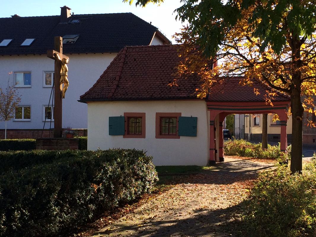 Ehemalige Friedhofskapelle, vom Friedhof Mauerreste und Kreuz vorhanden. Kleiner barocker Steinbau, verputzt, Fenstergewände und Portal Sandstein. Offene Vorhalle mit Walmdach und profiliertem Traufgesims auf geschnitzten Holzstützen. Einzige im Kreis erhaltene Kapelle dieses Typs; ähnliche Bauten früher in Seligenstadt und Froschhausen. Spätgotischer Altar derzeit in der Pfarrkirche St. Sebastian.