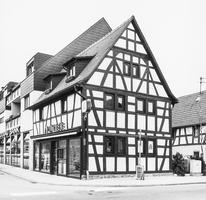 Fachwerkhaus des 18. Jhs. in Ecklage in der Ortsmitte. Schmuckloses, jedoch wohlproportioniertes und giebelseitig vollständiges Fachwerk mit gekrümmten Streben und typischer Figuration des stehenden Stuhles mit zwei mannähnlichen Figuren; profilierter Schwellenbalken. Durch neuen, zurückhaltenden Ladeneinbau relativ geringe Störung des städtebaulich prägnanten Hauses. Kulturdenkmal aus künstlerischen, städtebaulichen und ortsgeschichtlichen Gründen.