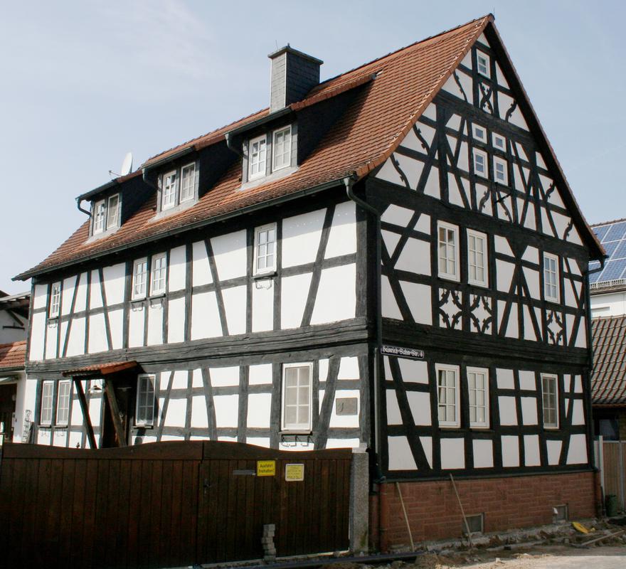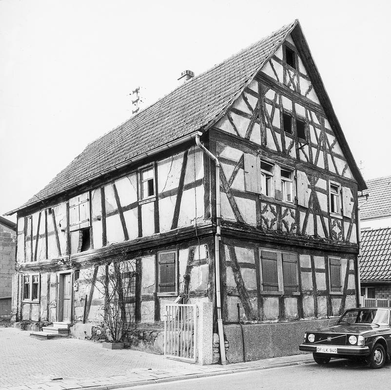 Dreizoniges Fachwerkhaus um 1700, bis auf die hintere Giebelwand fast komplett erhalten. In der Giebelfassade reiche Zierformen: genaste S-Streben in der Giebelzone, Schnitzrauten in den Brüstungsfeldern des Obergeschosses, außerdem Mannfiguren mit leicht geschwungenen Streben. Schwellenzone und hofseitige Balkenlage durch profilierte Verschalung verkleidet. Das Haus ist in seiner Vollständigkeit (zum Teil noch originale Fenster erhalten) ein herausragendes Beispiel für das bäuerliche Wohnhaus mit seiner typischen Grundrissaufteilung, bei gleichzeitig überdurchschnittlicher Qualität der handwerklich-künstlerischen Gestaltung. Kulturdenkmal aus ortsgeschichtlichen, wissenschaftlichen und künstlerischen Gründen.