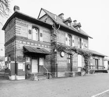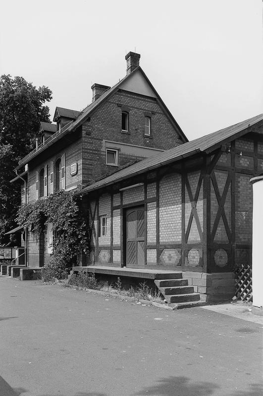 Stationsgebäude der 1896 eröffneten Rodgau-Bahn mit Güterhalle, von dem hier üblichen einheitlichen Bahnhofstypus abweichend als zweiteiliger Baukörper mit Satteldach, jedoch in ähnlicher Gestaltung in zweifarbigem Klinkermauerwerk mit Ornament. Bemerkenswert die wohlerhaltenen Details wie Fenster, Dachgauben, Zierfachwerk der Güterhalle. Kulturdenkmal aus geschichtlichen Gründen.
