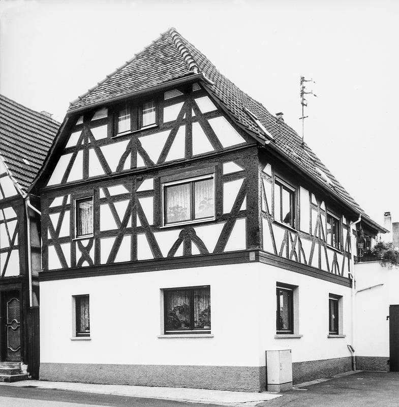 An der Ecke Palatiumstraße giebelständiges Haus an der platzartigen Straßenerweiterung. Über neumassivem Erdgeschoss Gefüge aus kräftig dimensionierten Hölzern mit den regional typischen Figurationen der Entstehungszeit Datierung 1698 - an Giebel- und Traufseite: Mannfiguren, gebogene Fußbänder, Feuerbock; Dach mit Krüppelwalm. Die markante Fassade wirkt als optischer Abschluss des Südteils der Großen Fischergasse. Kulturdenkmal aus künstlerischen und städtebaulichen Gründen.