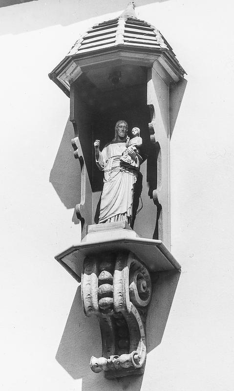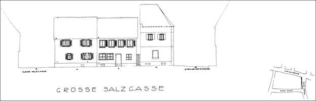 Traufständiges verputztes Fachwerkhaus des späten 17. Jhs. in städtebaulich markanter Eckposition an der Einmündung Kleine Salzgasse. Um 1850 Anbau eines Kuhstalls entlang der Kleinen Salzgasse; dieser nach 1874 zur Wohnnutzung ausgebaut und aufgestockt. 1914 Änderung der Gebäudeerschließung (Verlegung des Haupteingangs an die Kleine Salzgasse und Kellerzugang in den Innenhof), Ankauf und Anbringung einer bis heute erhalteten Madonnenfigur an der Südfassade (ursprünglich an der zur Straßenmündung orientierten Gebäudeecke angebracht, heute Kopie). Kernsanierung 1997.
