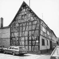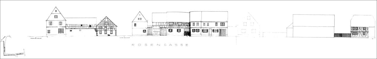 Traufständiges Wohnhaus mit überbautem Hoftor, verputztem Erdgeschoss, barocken Zierformen im Obergeschoss der Traufseite - Mannfiguren, Feuerböcke, gebogene Fußbänder als hier verbreitete Figurationen aus der Mitte des 18. Jhs. Die (durch Abbruch) freie östliche Giebelwand rein konstruktiv mit unregelmäßig gekrümmten Streben setzt einen Akzent am Anfang der zusammenhängenden Zeile Nr. 8-12. Kulturdenkmal aus künstlerischen und städtebaulichen Gründen.
