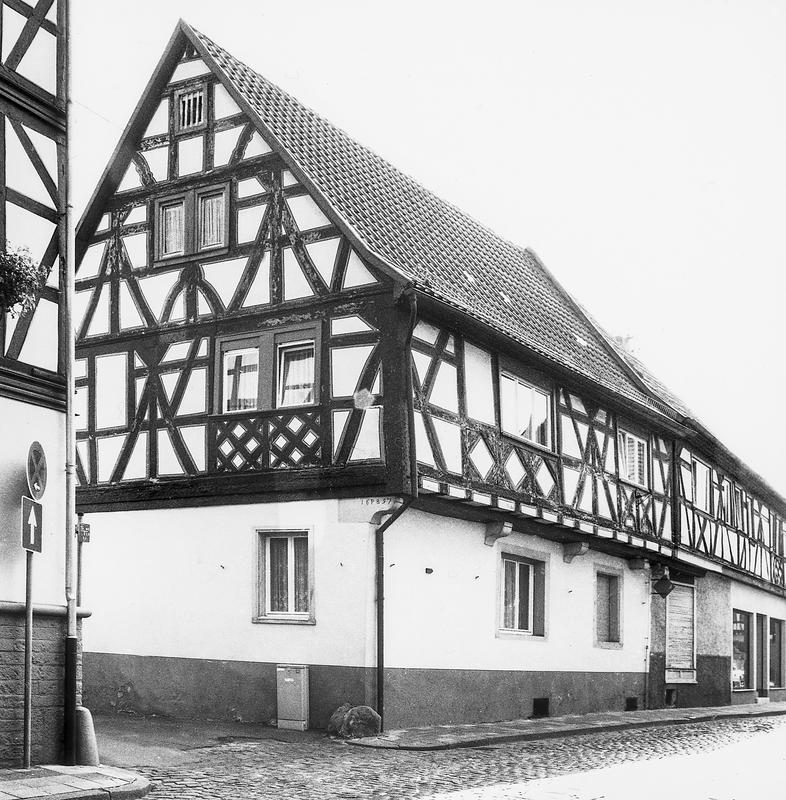 Eckhaus mit Traufwand an der Steinheimer Straße. Über massivem Erdgeschoss kragt das Obergeschoss mit aufwendigem Fachwerkschmuck auf Steinkonsolen vor, die Eckkonsole mit Inschrift 16 PB 97. Mannfiguren mit leicht geschwungenen Streben, in den Brüstungsfeldern Rautenornamente und Feuerböcke auch an der Schmalseite. Fachwerk überdurchschnittlicher Qualität, wie es in der Steinheimer Straße mehrfach auftritt, so dass hier ein geschlossenes historisches Bild vorhanden ist. Kulturdenkmal aus geschichtlichen, künstlerischen und städtebaulichen Gründen.