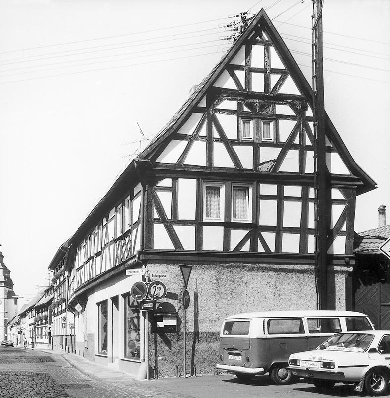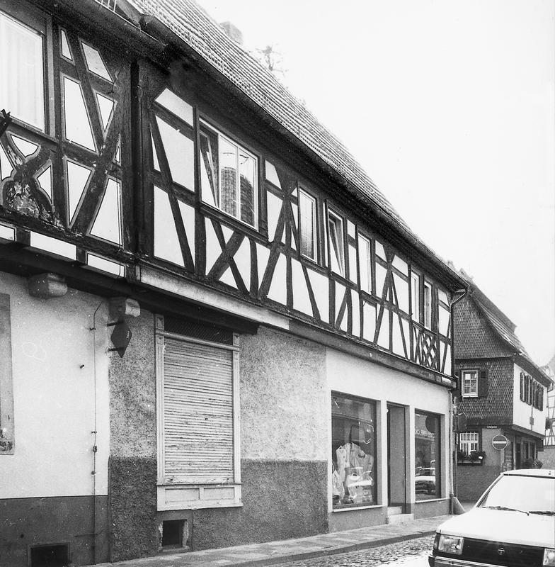 Langgestreckter Traufenbau auf massivem, neu verändertem Erdgeschoss; Baueinheit mit dem 1697 entstandenen Haus Stadtmühlgasse 1. In der Figuration ähnliches Fachwerk, jedoch Mannfiguren ohne Gegenstreben, sparsamerer Brüstungsschmuck - Andreaskreuz, durchkreuzte Raute. Die Giebelfassade zur erweiterten Einmündung Schafgasse setzt einen städtebaulichen Akzent in der geschlossenen Bebauung. Kulturdenkmal aus künstlerischen und städtebaulichen Gründen.