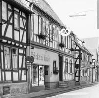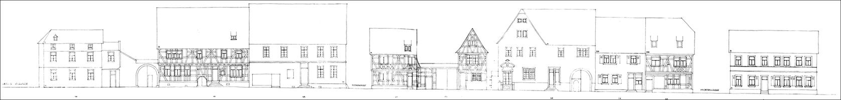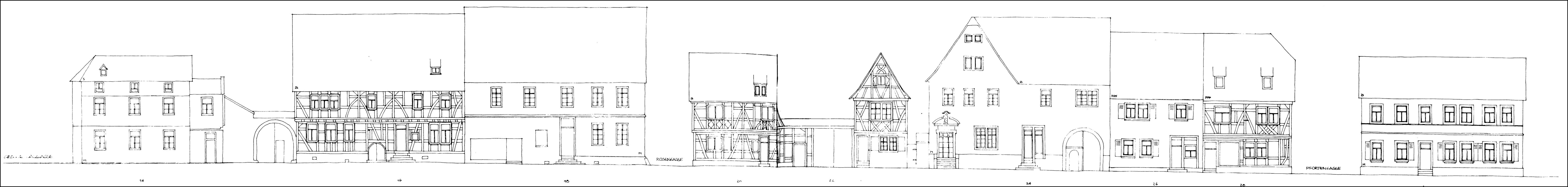 Fachwerkhaus um 1700 in Ecklage an der Rosengasse, Bestandteil des besonders einheitlichen Ensembles der Steinheimer Straße. Im Erdgeschoss teilweise massiv verändert durch Ladeneinbau, neue Sockelverkleidung. Im Obergeschoss Mannfiguren mit geschwungenen Gegenstreben, profilierte Schwellenzone. Besonders bemerkenswert die frühklassizistische Haustür mit Schnitzerei im Zopfstil, um 1780, mit Original-Beschlägen. Kulturdenkmal aus künstlerischen und städtebaulichen Gründen.