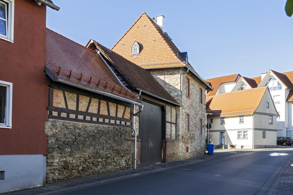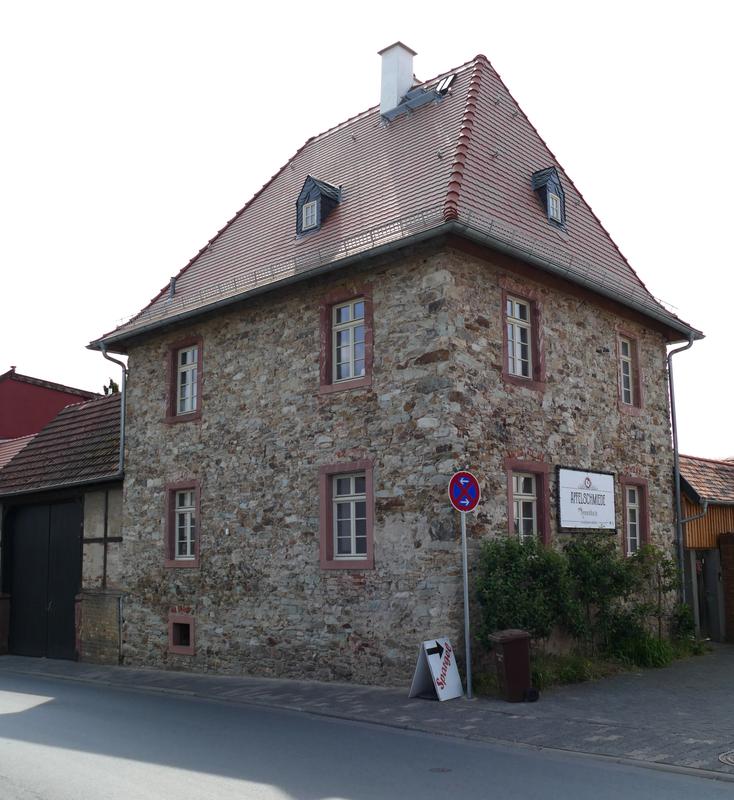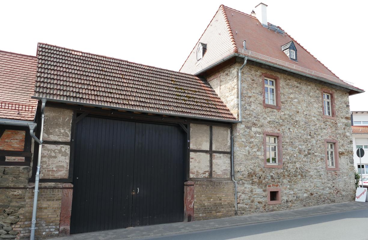 Vierseitige Hofanlage mit zweigeschossigem Wohnhaus mit Sandsteingewänden und hohem Walmdach. Es handelt sich um die frühere katholische Konfessionsschule von 1749, seit 1821 Privathaus. Aus der Erbauungszeit erhalten geblieben eine profilierte Türbekleidung und ein aufgedoppelter Flügel der Kellertür. Die Hofeinfahrt mit zwei barocken Sandsteinpfeilern wurde im 19. Jahrhundert überbaut und mit einem Tor versehen. Daran angrenzend ein ehemaliger Stallteil mit Feldsteinsockel und Fachwerkobergeschoss, rückwärtig freistehende Scheune, aus Feldsteinen wie der Schulbau, mit Ziegelsteinausbesserungen.