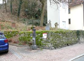 Ältester Grabstein von 1592 für den zweijährigen Wilhelm Ditz. Laut Inschrift ist Ditz der erste, der damals auf diesem Friedhof bestattet wurde. Sühnekreuz des 14./16. Jahrhunderts. Lateinische Inschriftplatte (Antiqua) 1591 vom ehemaligen Friedhofstor. Gusseisernes Grabkreuz des evangelischen Pfarrers Jakob Ludwig Fliedner 1813 (Vater Theodor Fliedners).