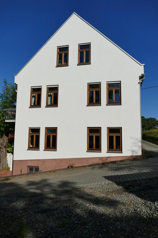 Mühlenkomplex aus mehreren, im Winkel angelegten Gebäuden; der Hof, durch den der Mühlgraben verlief, mit einer Bruchsteinmauer geschlossen. Zugehörig die abseits auf einer Anhöhe gelegene Annakapelle.