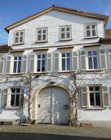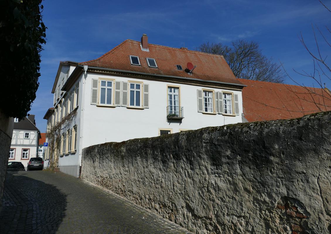 Spätbarockes, herrschaftliches Wohngebäude eines Weingutes mit angrenzender alter Hofmauer, in wichtiger straßenbildbestimmender Ecklage, 1742 errichtet. Das zweigeschossige, verputzte Wohnhaus mit Walmdach besitzt symmetrische Achsenteilung. Akzentuierung der Mittelachse durch die rundbogige Toreinfahrt mit Sandsteingewände und Wappenkeilstein, durch das überfangende, vierachsige, mit Schindeln verkleidete Zwerchhaus sowie die mit profilierten Stürzen bekrönten mittleren vier Fenster des Obergeschosses. Fensterveränderungen des 19. Jahrhunderts. Zugehörig rückwärtiger Scheunenanbau mit Sandsteingewänden und handgestrichenen Biberschwanzziegeln.