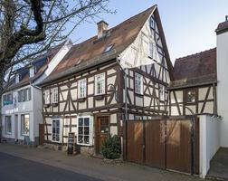 Traufständiges zweigeschossiges Fachwerkwohnhaus auf niedrigem (erneuertem) Feldsteinsockel; kleiner zurückliegender Fachwerkanbau.
