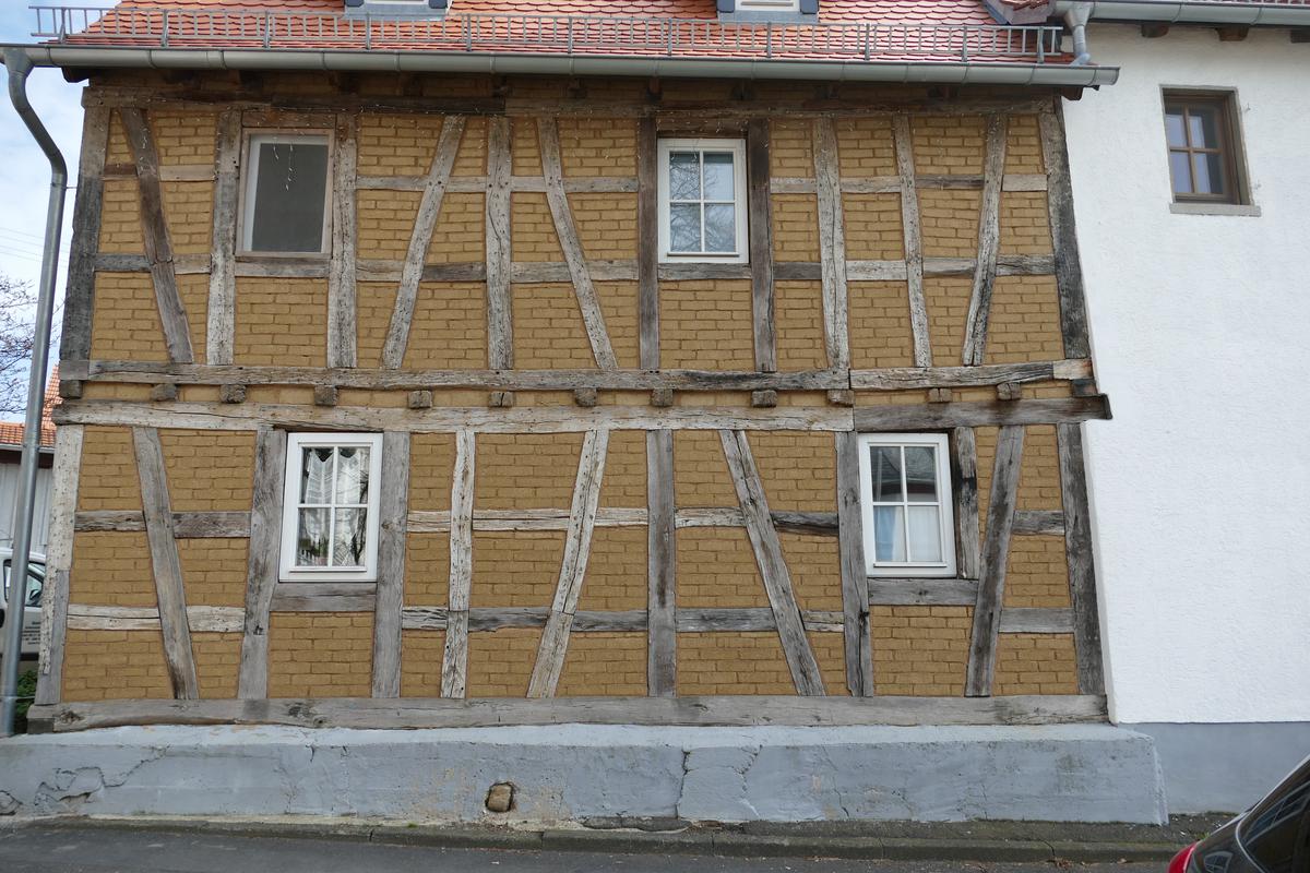 Das giebelständige, verputzte Fachwerkwohnhaus mit Satteldach ist ein wichtiger Kopfbau an der Straßengabelung im Kirchenbereich. Der vordere Teil des Hauses in zweigeschossiger, ungestört erhaltener Rähmkonstruktion entstand 1744, später wurde er von der Straße zurückversetzt. Von 1802 bis 1826 diente der Bau als Schulhaus und Dorflehrerwohnung.