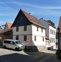 Traufständiges, verputztes Fachwerkwohnhaus einer vierseitigen Hofanlage an der Ecke zur Zwergstraße. Zweigeschossige Rähmkonstruktion des 18. Jahrhunderts auf hohem Feldsteinsockel, leichter Geschossüberstand, Satteldach mit hervorstehenden Pfettenköpfen. Zur intakten Hofreite gehören traufständig angebauter Stall in Fachwerkkonstruktion des 18. Jahrhunderts auf hohem Sockel, parallel zum Wohnhaus im Hofbereich stehende Scheune und das die Anlage seitlich schließende überdachte Hoftor.