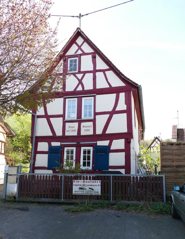 Schmales Fachwerkwohnhaus mit Satteldach und rückwärtigem, gleichartigem Anbau, dem ansteigenden Boden angepasst. Beide Bauten mit traufseitiger Geschossauskragung, weitgehend originale, kleinformatige Fensteröffnungen; gut erhaltene Rähmkonstruktion der Zeit um 1600. Kontruktives Fachwerk mit gebogenen Streben und Andreaskreuzen. Freilegung und Sanierung 2008.