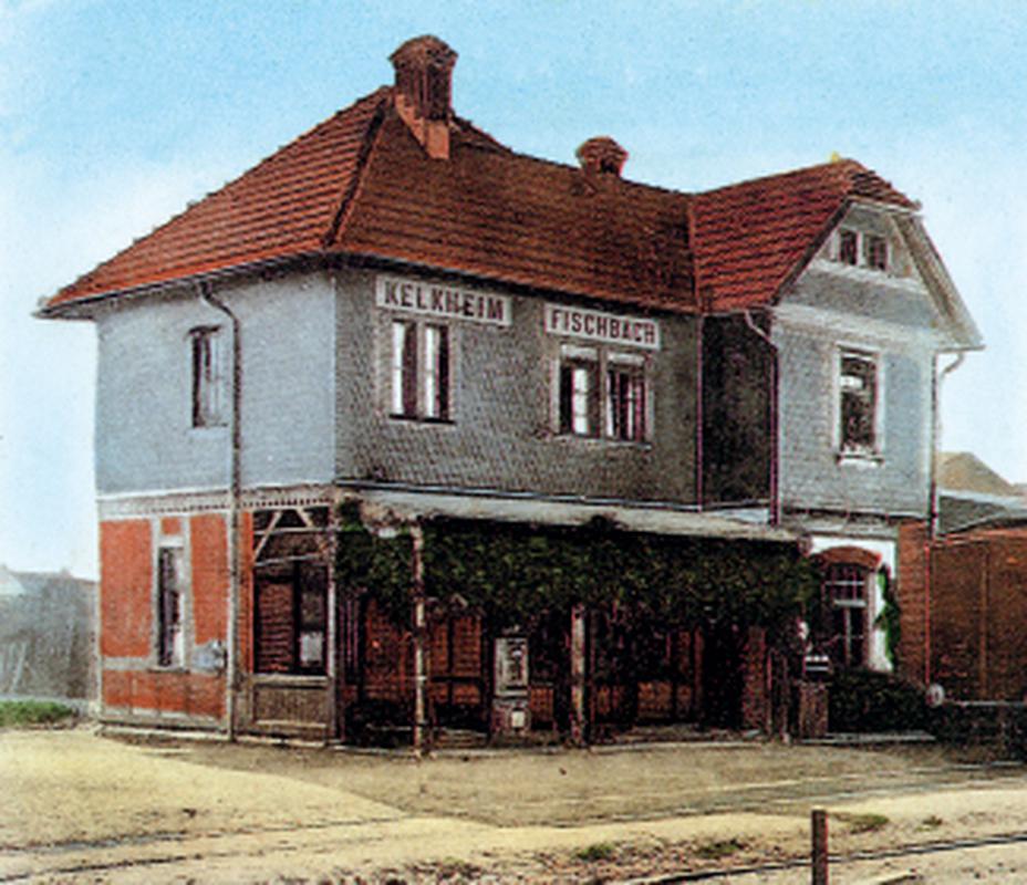 Stationsgebäude der am 20. Februar 1902 in Betrieb genommenen Kleinbahn Höchst-Königstein, heute Frankfurt-Königsteiner Eisenbahn (FKE). Zweigeschossiger Baukörper mit seitlichem Risalit und hölzernem Vordach zum Bahnsteig. Z. T. Ziegelsteinmauerwerk mit gliedernden Wandvorlagen, z. T. Fachwerk mit Ziegelausfachung. Seitlich angebauter Güterschuppen in Ziegelmauerwerk.