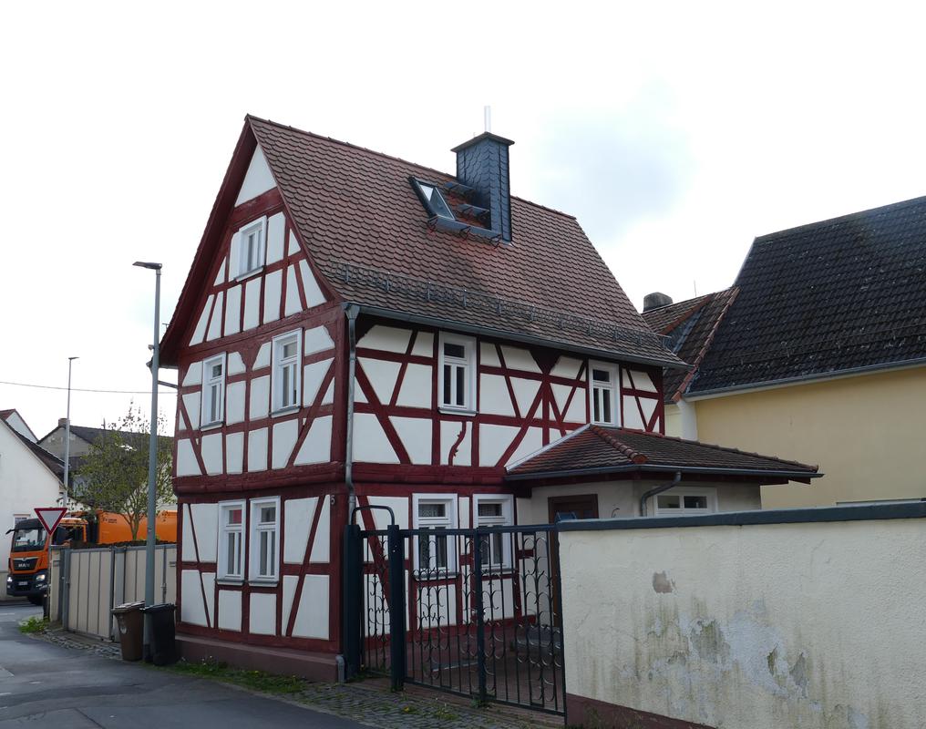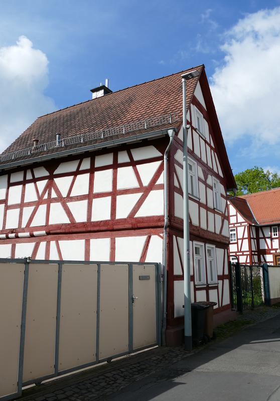 Schmales, giebelständiges, zweigeschossiges Fachwerkwohnhaus. Rähmkonstruktion im Erdgeschoss einriegelig, im Obergeschoss zweiriegelig mit Aussteifungen in "Wilden-Mann-Figuren". Die Kopfwinkelhölzer profiliert. Leichter Geschossüberstand der um die Mitte des 18. Jahrhunderts entstandenen Fachwerkkonstruktion. Im 19. Jahrhundert wurde ein Kriechkeller angelegt.
