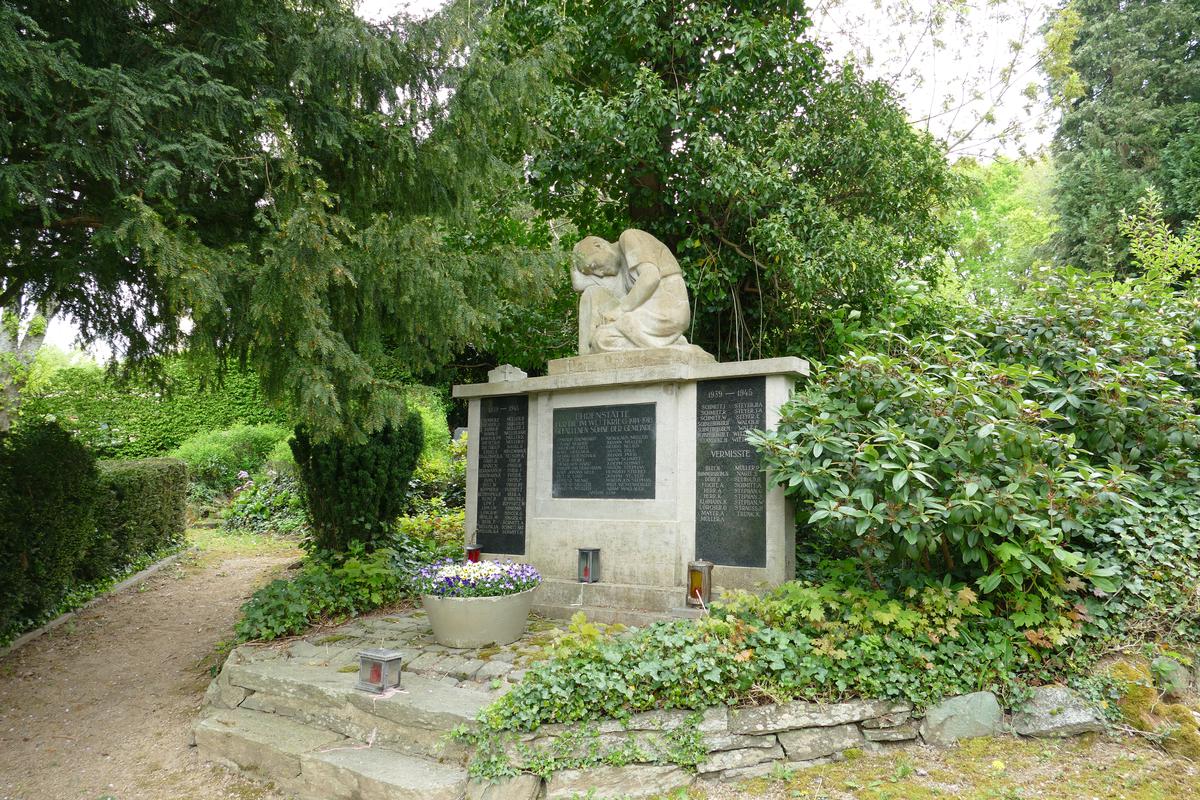 Oberhalb der Gagerngräber ein Gefallenendenkmal, das 1922 zum Gedenken an de Gefallenen des Ersten Weltkriegs aufgestellt wurde. Das Denkmal aus Zementstein wurde vom Bildhauer Fritz Best (1894-1980, Kronberg) geschaffen. Für die Gefallenen und Vermissten des Zweiten Weltkriegs wurden nachträglich seitlich Inschriftentafeln ergänzt. Auf einem trapezförmigen Sockel dreigeteilte Stele mit Scharrierungen, darüber knieende Figur einer Trauernden und Sockelplatte mit Inschrift "Den Opfern".