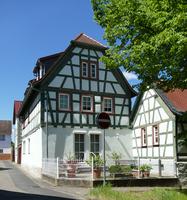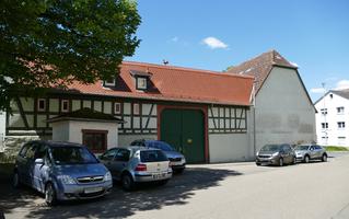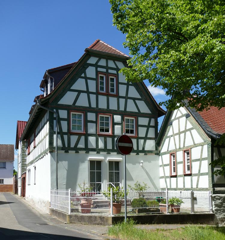 Das teilmassive Wohnhaus mit giebel- und traufseitigem Geschossüberstand und regelmäßiger Fensteranordnung zeigt ein zweiriegeliges Fachwerkgefüge mit enger Ständerstellung und Vertrebungen, das vermutlich in der ersten Hälfte des 18. Jahrhunderts entstand. Zugehörig Stallteil mit Tor und Scheune als Winkelbauten.