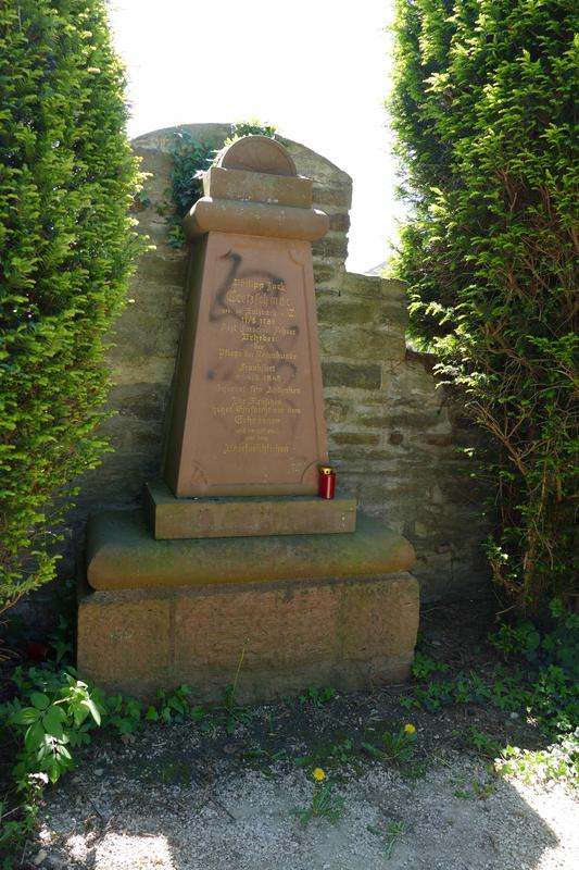 - Gedenkstein für Philipp Jakob Cretzschmar, Sohn des lutherischen Sulzbacher Pfarrers Otto Cretzschmar, Mitbegründer der Senckenbergischen Gesellschaft in Frankfurt. Inschrift in handwerklich sauberer Steinmetzarbeit: