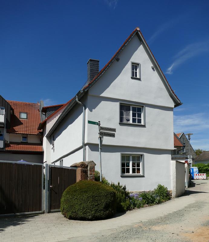 Giebelständiges, verputztes Fachwerkwohnhaus einer Hofreite. Die Rähmkonstruktion des 17./18. Jahrhunderts kenntlich am zweifachen Geschossvorsprung des Giebels. Auch traufseitig Geschossüberstand, hier noch kleinformatige Fenster, im Giebel störend vergrößert. Wichtiger Bestandteil der Gesamtanlage an der Abzweigung zum ehemaligen Oberschultheißenhof.