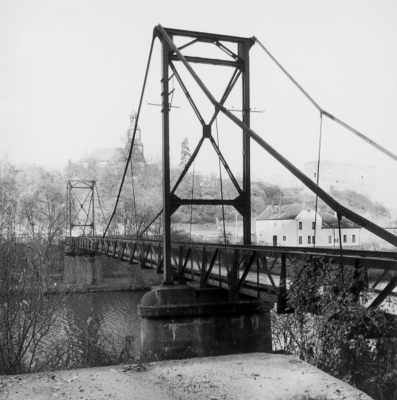 Ehemalige Werksbrücke der Erzgrube Buchwald. Ursprünglich als Bogenbrücke beim Bahnhof Weilburg errichtet und 1918 (?) in geänderter Konstruktion hierher versetzt.