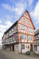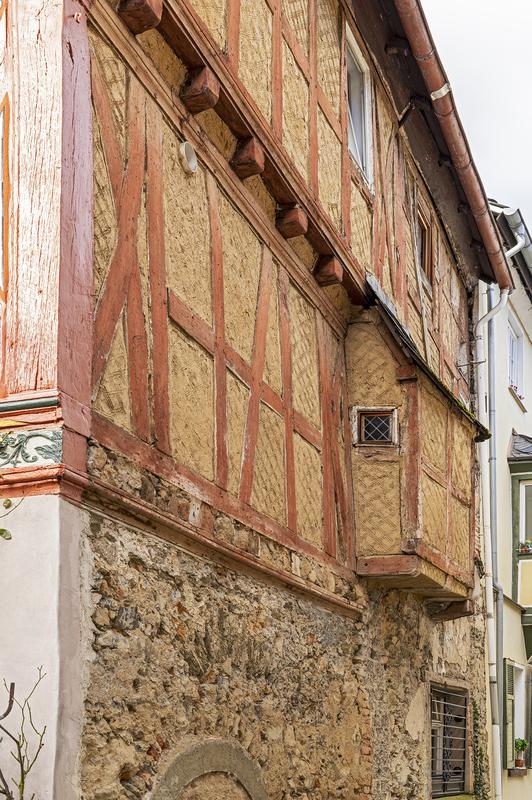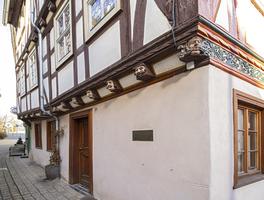 Ältester Kern des Gebäudes ist ein spätmittelalterlicher Massivbau, dessen Ostwand noch in größeren Partien erhalten ist. Als Ersatz für den südlichen Teil dieses Gebäudes wurde 1567 eine neue Fachwerkkonstruktion errichtet. Das Fachwerkgefüge mit gebogenen K-Streben an den Eck- und Bundständern, gerundeten Andreaskreuzen im Giebel sowie Rundstabprofilierung zeigt eine noch an der 1. Hälfte des 16. Jahrhunderts orientierte Baugesinnung, während der Schnitzdekor der Eckständer und Balkenköpfe "moderne" Motive und Formen verarbeitet. Herausragend sind die originellen Maskenköpfe auf der westlichen Traufseite des Hauses, deren traditionelle Deutung als Verkörperung der sieben Todsünden jedoch willkürlich ist. Aus dem Mund der Eckfratze erwächst das aufwändig geschnitzte Ornamentband, das den unteren Schwellbalken verziert.