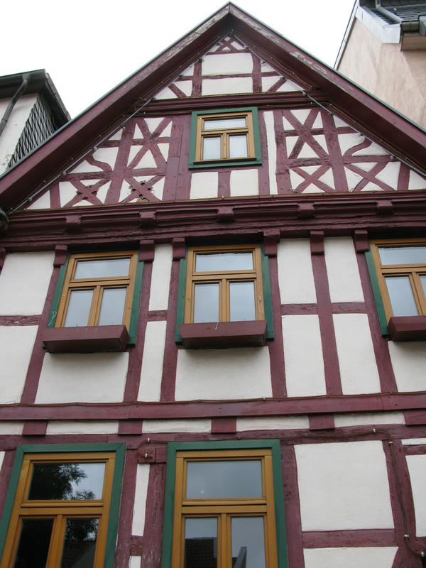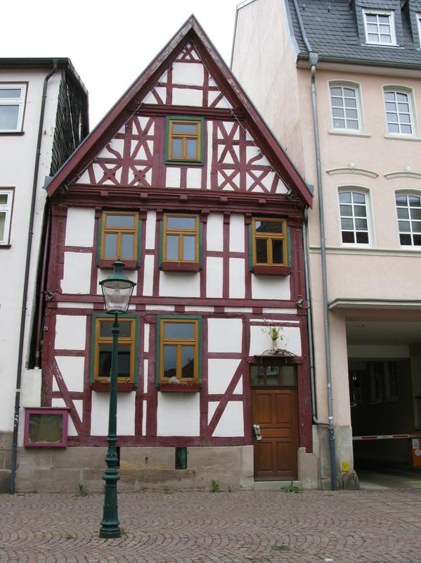 Zweigeschossiges, giebelständiges Fachwerkwohnhaus und Hinterhaus in der ehemaligen Vorstadt der Löher- und Weißgerber. Das Fachwerk des Vorderhauses mit reichem Fachwerkschmuckgiebel wurde in die Zeit um 1550 datiert. Über Sandsteinsockel zweiriegeliges Gefüge mit nach außen geneigten Fußstreben, im Obergeschoss einriegelig. Das Giebeldreieck mit reich profilierten Rähmbalken, Andreaskreuzen und teilweise gebogenen Streben. Für das Hinterhaus wurde dendrochronologisch eine Bauzeit im Jahr 1492 festgelegt und es gilt damit als eines der ältesten erhaltenen Bürgerhäuser Fuldas.