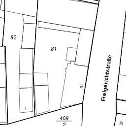 Die Scheune von Freigerichtstraße 35 ist ganz in gehauenen Sandsteinquadern errichtet. Ihre Rückseite liegt an der Bogenstraße und faßt räumlich die Wegführung vom alten Amtshaus zur evangelischen Pfarrkirche. Das verputzte Fachwerkwohngebäude von Freigerichtstraße 35 ist auf der Hofseite durch den Einbau großformatiger Fenster in seinem historischen Erscheinungsbild gestört. Sehr viel besser ist der Erhaltungszustand im Hinblick auf das alte Gefüge beim gleichartigen Wohnhaus von Freigerichtstraße 40, obwohl auch hier die Fassade besonders durch den Einbau von Einflügelfenstern beeinträchtigt ist. Die große rückwärtige Scheune mit zwei Wageneinfahrten hier wie im Fall von Freigerichtstraße 35 massiv erbaut.